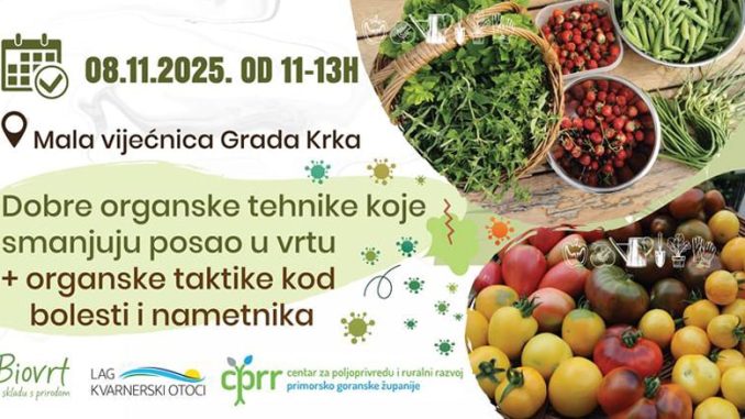 Radionicu vodi udruga Biovrt – u skladu s prirodom, a organiziraju je LAG Kvarnerski otoci i Centar za poljoprivredu i ruralni razvoj PGŽ-a.